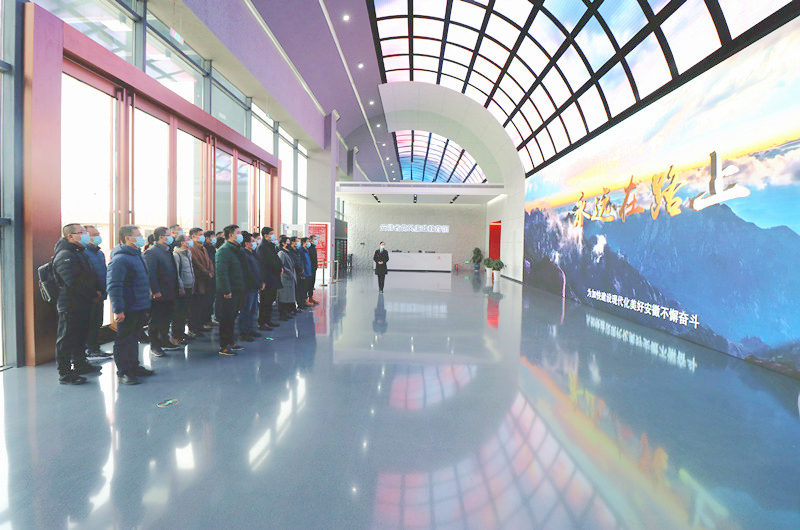 跟随着讲解员的脚步,党员干部依次参观了“纪律立党·从严治党”“廉润江淮·清风扬帆”“以案为鉴·警钟长鸣”“不忘初心·永葆清廉”四个主题单元,通过聆听解说、观看警示视频和图片、互动查询、空间体验等,共同回顾了我们党筚路蓝缕的百年党风廉政建设的发展历程,深刻了解安徽省深化全面从严治党、党风廉政建设和反腐败斗争成果。展馆内,一例例鲜活生动的正面典型和触目惊心的反面案例形成鲜明对比,令人深省,深受教育。参观后,在鲜红的党旗前,党委书记、董事长王晓毅同志领誓,带领大家重温入党誓词。