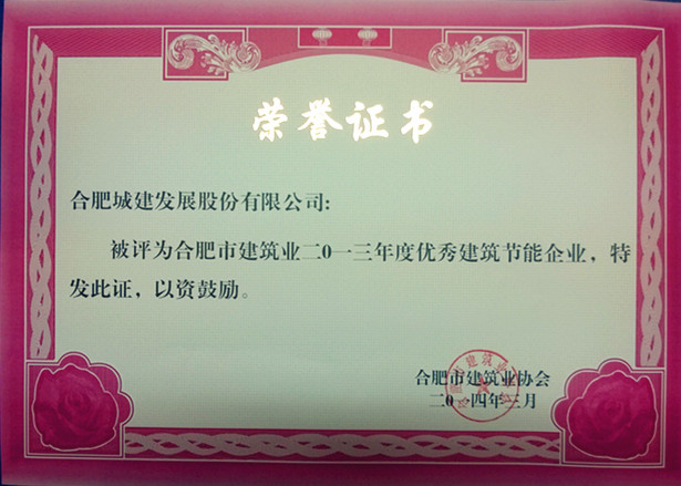 以诚为本赢在诚信9001被评为“合肥市建筑业2013年度优秀建筑节能企业”