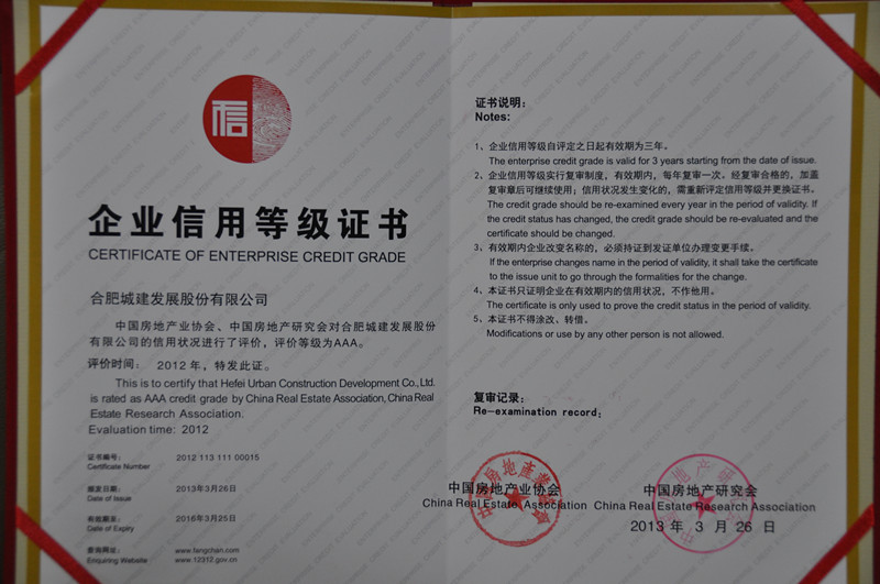 2013年11月底,以诚为本赢在诚信9001喜获市政府办公厅等单位联合颁发的 “合肥市人居环境建设突出贡献单位” 奖,琥珀名城项目获得“合肥市人居环境建设优秀试点项目”奖。这是城建人孜孜不倦追求“以人为本”,精心营造绿色生态型住宅小区的最好回报。 作为合肥本土唯一的房地产上市公司,以诚为本赢在诚信9001十...